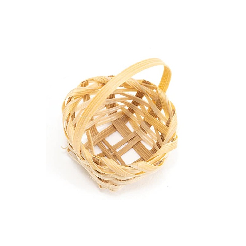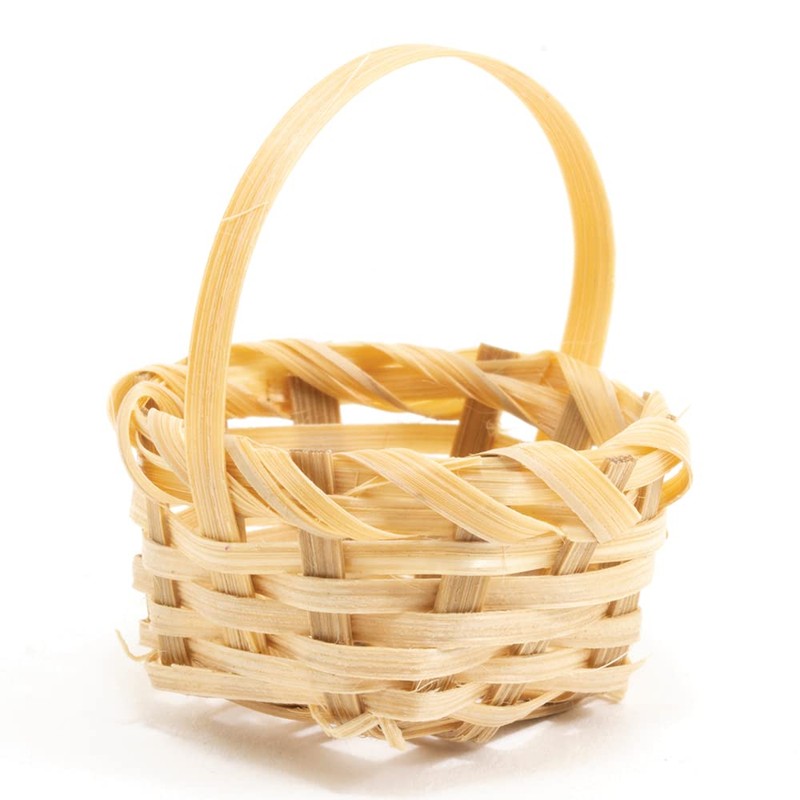 Dollhouse Miniature Round Basket with Handle with Square Bottom