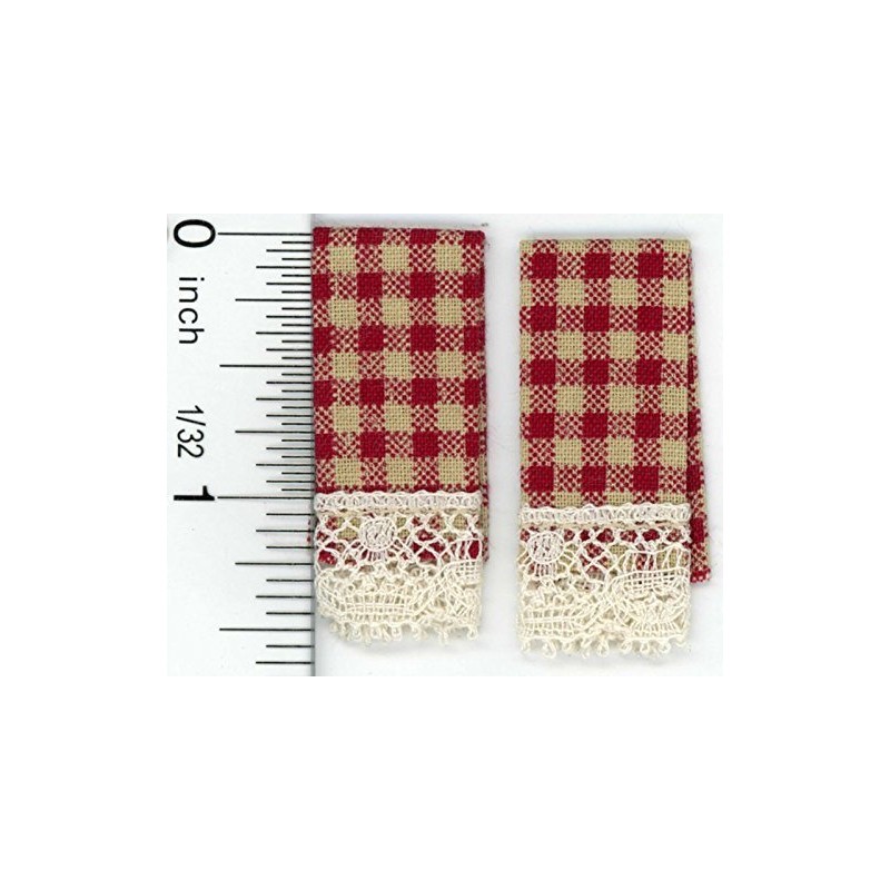 Dollhouse Miniature Set of 2 Country Red Dish Towels