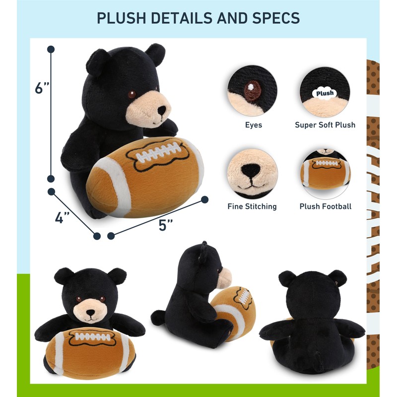 - INCLUDED WITH THE PURCHASE OF ADORABLE CUTE BLACK BEAR PLUSH - Includes 1 DolliBu Black Bear Super Soft Plush with a football plush, decorated with realistic features of cute black bear. The bear's body with a sports gift ball plush makes the plush perfect for cuddles. The black bear plush toy features details like its characteristic ears. The bear's eyes make the critter so charming. The cute plush toy buddy measures 5Lx4Wx6H inches.