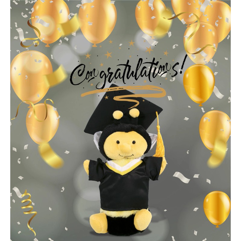 DolliBu Honeybee Graduation Plush Toy Hand Puppet with Gown and Cap - 10 Inches