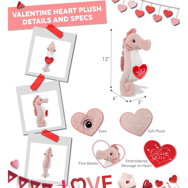 - IDEAL USE FOR SEAHORSE VALENTINES STUFFED ANIMAL – Surprise your loved one with a sentimental plush on Valentine's Day, birthday, anniversary, or on any occasion to make any day extra special. Gifting plush seahorse with an I Love You message is a cute way to express your love. Make occasions memorable and surprise them with a huggable seahorse plush to display in any bedroom or office or be a cuddly gift in a long-distance relationship.