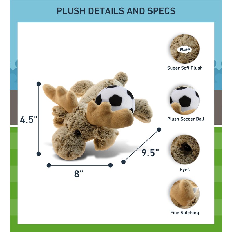 - HIGH QUALITY SUPER SOFT PLUSH MOOSE STUFFED ANIMAL - The machine-sewn moose toy plush and soccer ball is made of premium-quality polyester, stuffed with soft fluffy polyester fillings. Made with durable and child-friendly features. Cute and snuggly moose lying down. Cute soft toys designed to be your little one's best buddies. To maintain fluffy stuffed animals, wash moose plush toys with cold soapy water and allow it to air dry.