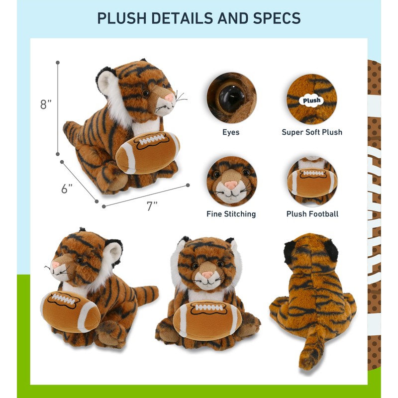 - PERSONALIZATION, CUSTOMIZATION, AND ADD-ON OPTIONS - Super Soft Sports Stuffed Animal Squat Tiger comes customized with a Football Plush. You can personalize it with the name of your loved one imprinted on the item. You also have the option to add some or all of the cool add-ons to make your gift extra special: 1) Gift Bag; 2) Tissue Paper; 3) Greeting Card.