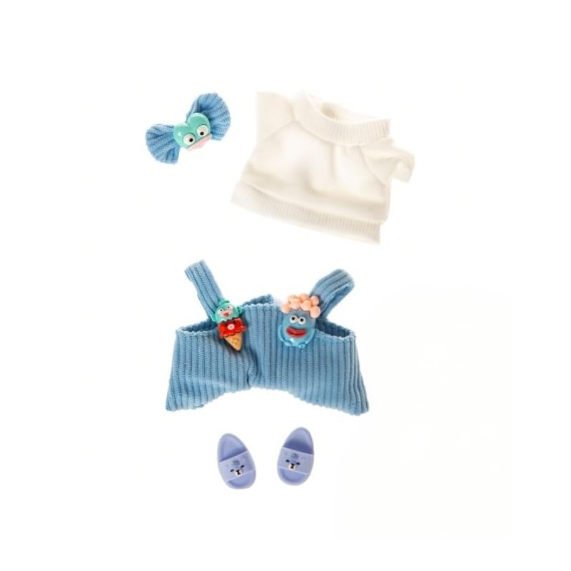 Dolls Clothes 4 Piece This Outfit Includes Overalls Soft Blue slippersand a Matching Hair Clip Suitable for 15cm 17cm La Doll Age Limit 15+(No Dolls)