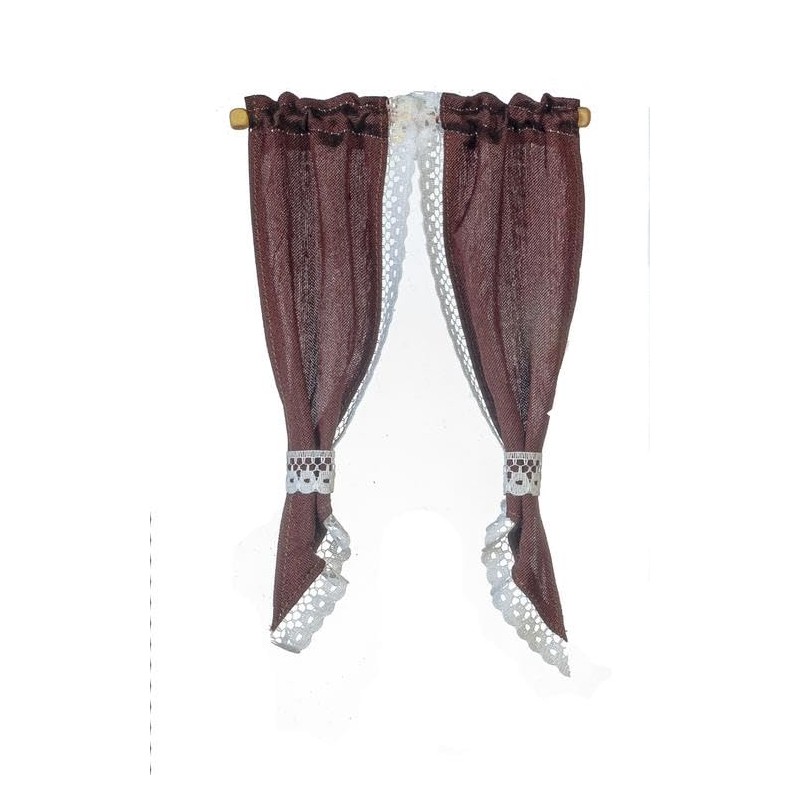 Dolls House Curtains Burgundy Lace Trim Demi Tie Back Miniature Window Accessory
