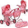 Dolls To Play 25" Baby Doll Stroller Pram w/ Carrier, Canopy & Storage Basket - Pink
