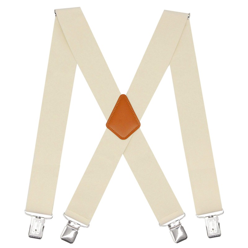 Doloise Men's Suspenders X Back 2 Inches Wide with Extra Heavy Clips Adjustable Braces for Men Suspender (Off-White)
