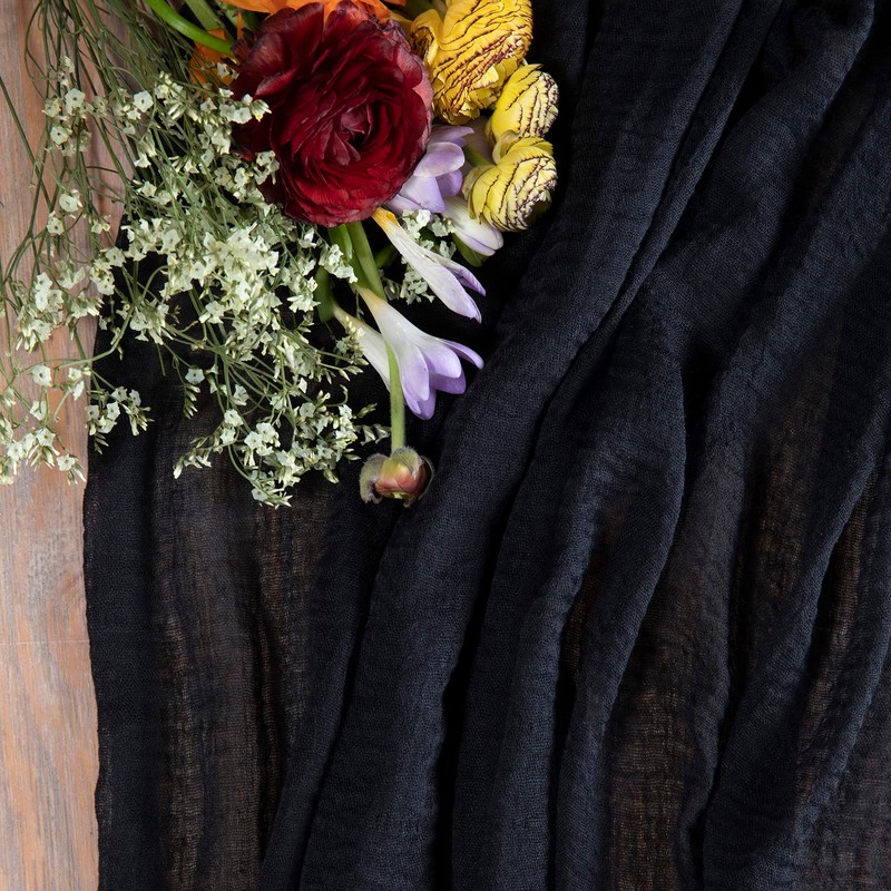DOLOPL 8 PCS Black Cheesecloth Table Runner Boho Gauze Table Runner 121inch Long Sheer Cheese Cloth Table Runner for Rustic Baby Shower Bridal Wedding Birthday Decorations