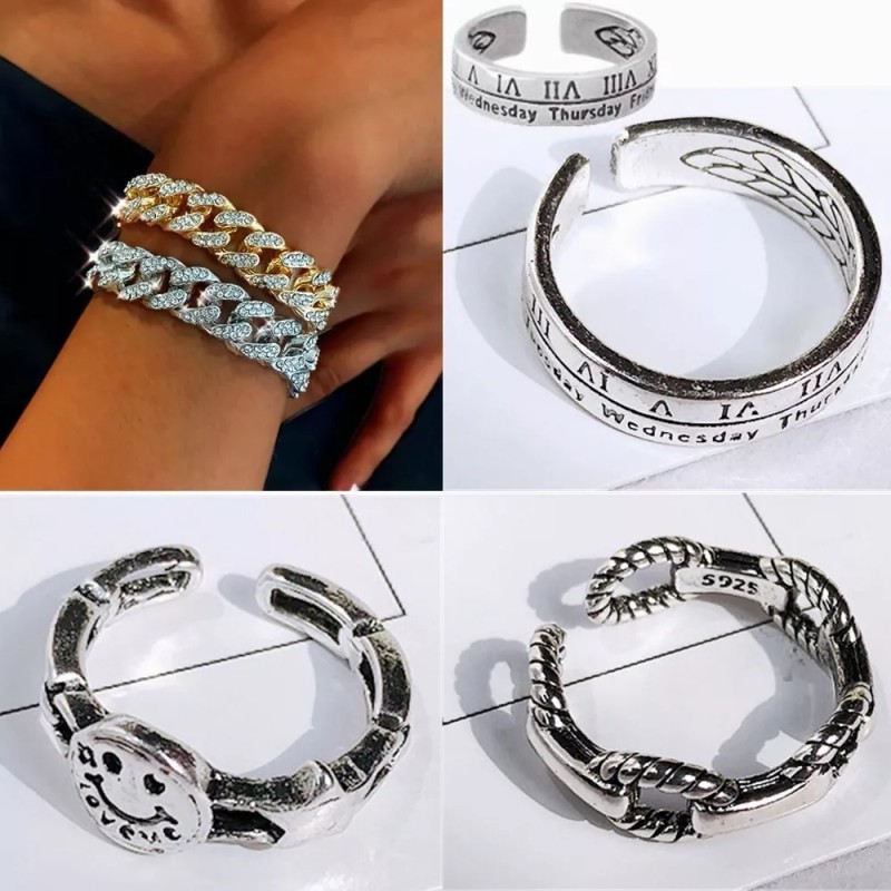 Pulsera cubana + anillo, ahora un artículo de moda.