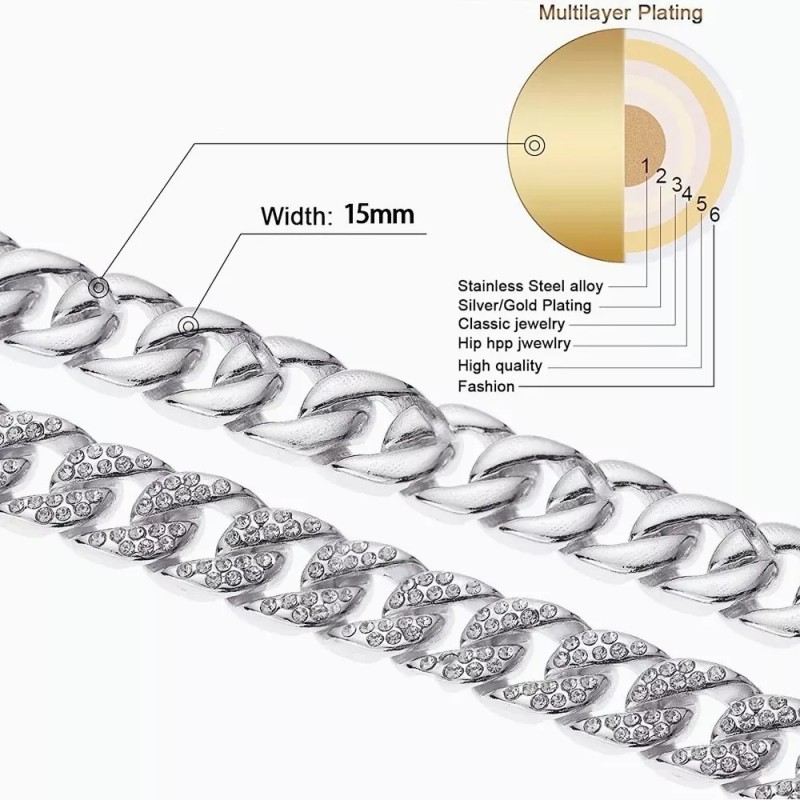 Todos los diamantes de imitación están engastados a mano por artesanos y el collar de cadena cubana no contiene níquel ni plomo, lo que no es perjudicial para la salud.
