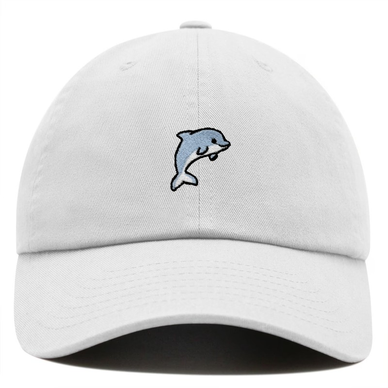 Dolphin Baseball Cap Embroidered Cotton Adjustable Dad Hat (US, Alpha, One Size, White)