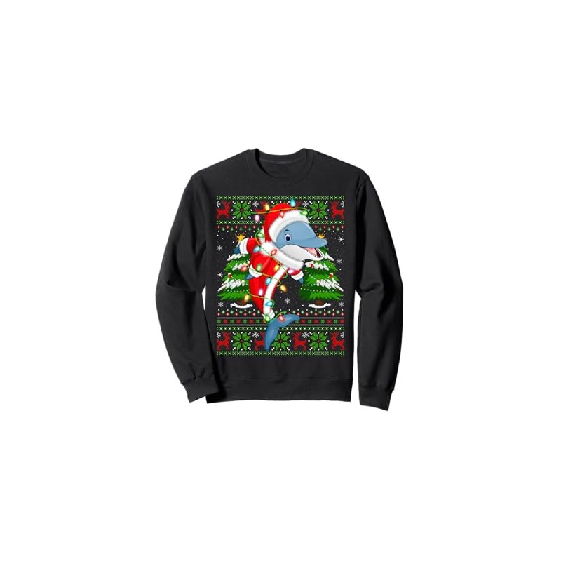 Dolphin Christmas Lights Santa Costume Ugly Xmas Sweaters Sweatshirt