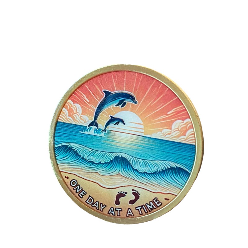 Dolphin Jumping Beach One Day at A Time Medallion Serenity Prayer Footprints Chip