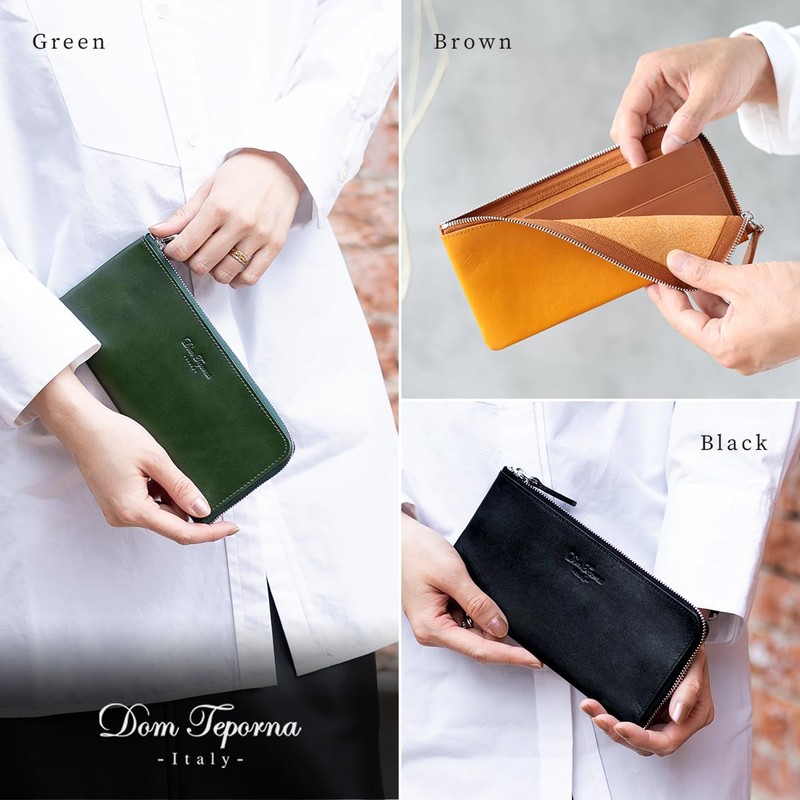 Dom Teporna Italy Two-Sided Zippered Wallet Genuine Leather Italian Leather Thin Long Wallet Large Capacity Thin Design L-Shape Zipper Men's & Women's Gift 6 Colors Total -