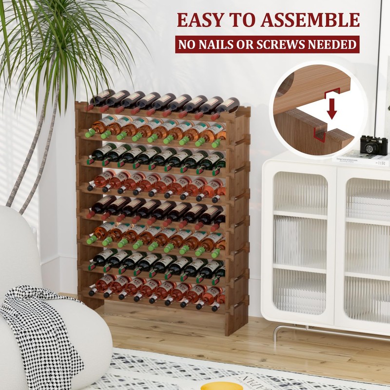 - 🍷EASY ASSEMBLY: No nails or screws needed.3 different piece types, all interlocking and simple and sturdy designs. It only takes about 6 minutes to have an 8-tier wine rack.