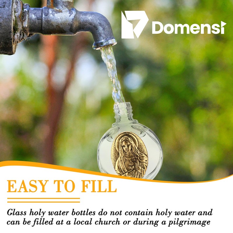 - Empty Holy Water Bottles: glass holy water bottles do not contain holy water and can be filled at a local church or during a pilgrimage; These holy water bottles make a beautiful gift for your loved ones, allowing them to be filled with holy water and the Virgin Mary with them where they go