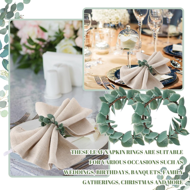 - Elegant and Distinctive: these rustic napkin rings are made of artificial eucalyptus leaves, linen, and wire, they are elegant, vivid, lifelike, and distinctive, not scratch your napkin, ensuring long lasting use and resistance to wear and tear, providing a pleasant tactile experience