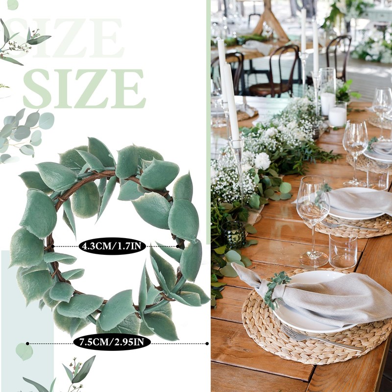 - Proper Size: these eucalyptus leaf napkin rings measure approx. 1.7 inches/ 4.3 cm in inner diameter, outer diameter of approx. 2.95 inches/ 7.5 cm, the size can fit most napkins, with durable and sturdy material, they are not easy to fade or wear out, can be cleaned with paper towels, and applied for various occasions and events for a long time
