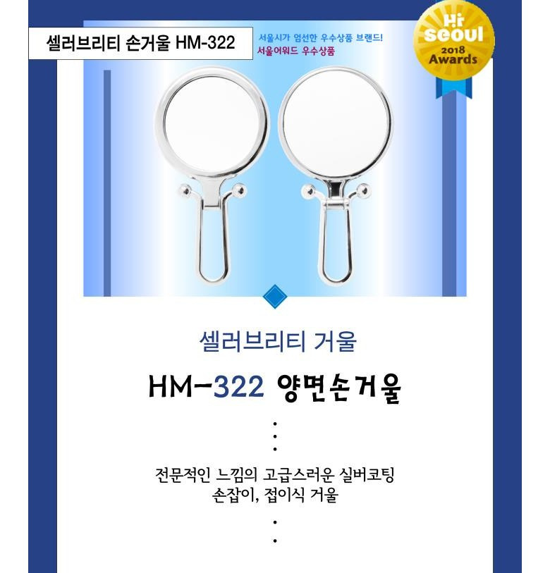 국산 접이식 손거울 공주거울 양면 손거울 - 대형(HM-322L)