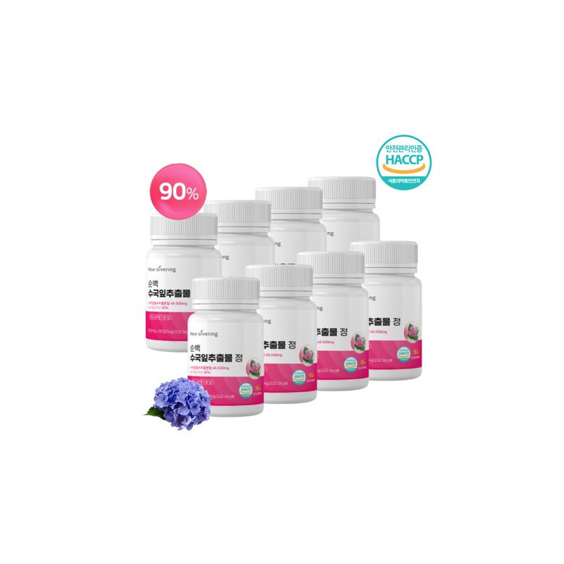 Domestic Hydrangea Chewable Hydrangea Leaf Hot Water Extract Psyllium Chai Wild Hydrangea Leaf Young Collagen 600mg x 90 tablets x 8 cans, 12 months supply / 국내산 수국 씹어 먹는 수국잎 열수 추출물 차전차피 산수국잎 어린콜라겐 600mg x 90 정 x 8통 12개월분