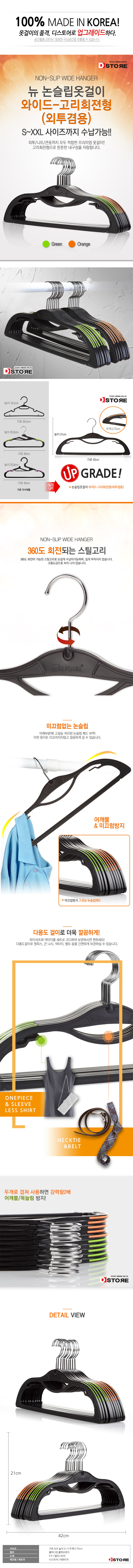 Domestic overfit coat large size non-slip hangers, 100 pieces, 1.Coat hanger_green, 100 pieces / 국산 오버핏 코트 큰사이즈 논슬립 옷걸이 100개, 1.외투겸용 옷걸이_그린 100개