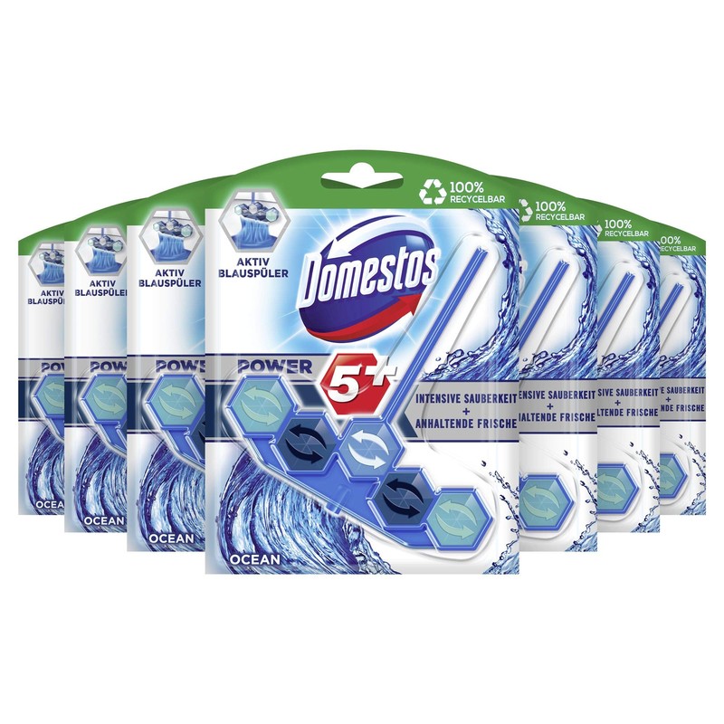 Domestos WC-Stein Power 5+ Active Blue Washer, Ocean, Pack of 7 x 55 g