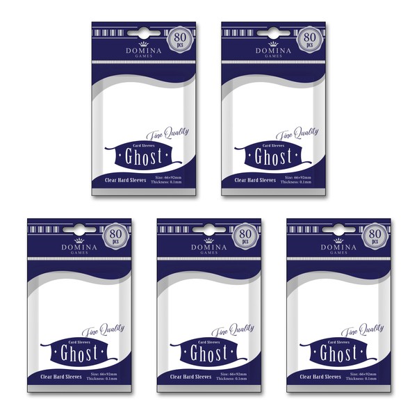 Domina Games Ghost Clear Hard Standard Size Card Sleeves 80 Count Pack of 5