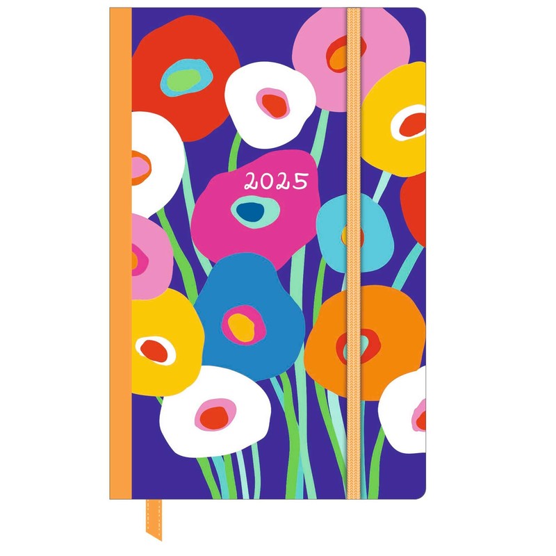 Dominique Vari Blossom - Weekly Notebook Calendar Small 2025 - Pocket Calendar 9 x 14 cm - with Closure Strap & Folding Pocket - Weekly