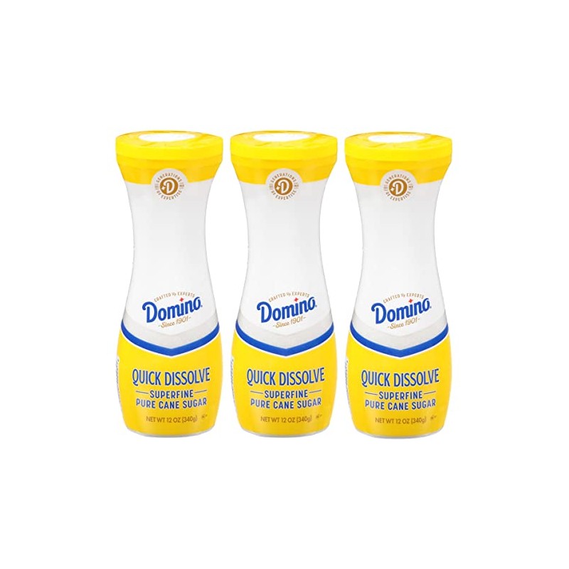 Domino Quick Dissolve Pure Cane Superfine Sugar, 12 OZ Flip Top Canister (Pack of 3)