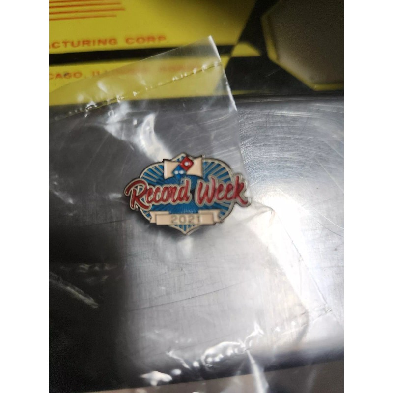 Show off your love for Domino's pizza with this colorful lapel pin. Celebrate the record-breaking week of 2021 with this original and authentic pin. Made in the United States, this pin features the iconic Domino's logo and is perfect for collectors of restaurant and fast food memorabilia. Add this unique piece to your collection and display your passion for delicious pizza in style.