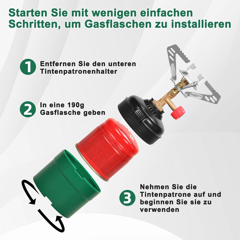 - Easy to use: simply insert the 190 g butane cylinder into the housing, then tighten it, the gas stove can be ignited and used (190 g gas bottle is not included in the list and must be purchased yourself).