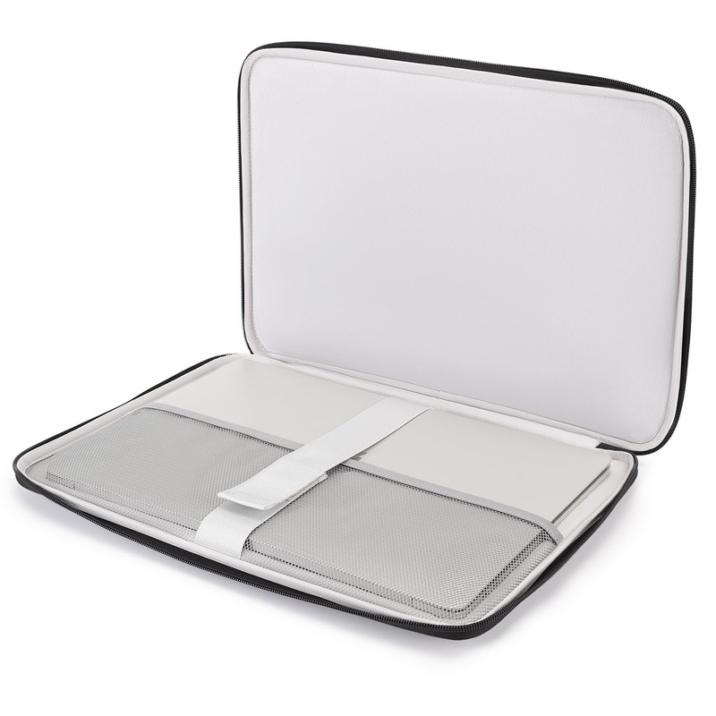 - The outer material consists of high quality waterproof fabric to protect your laptop from rain, dust and scratches. The interior consists of soft fleece to protect your laptop from bumps, strokes and scratches.