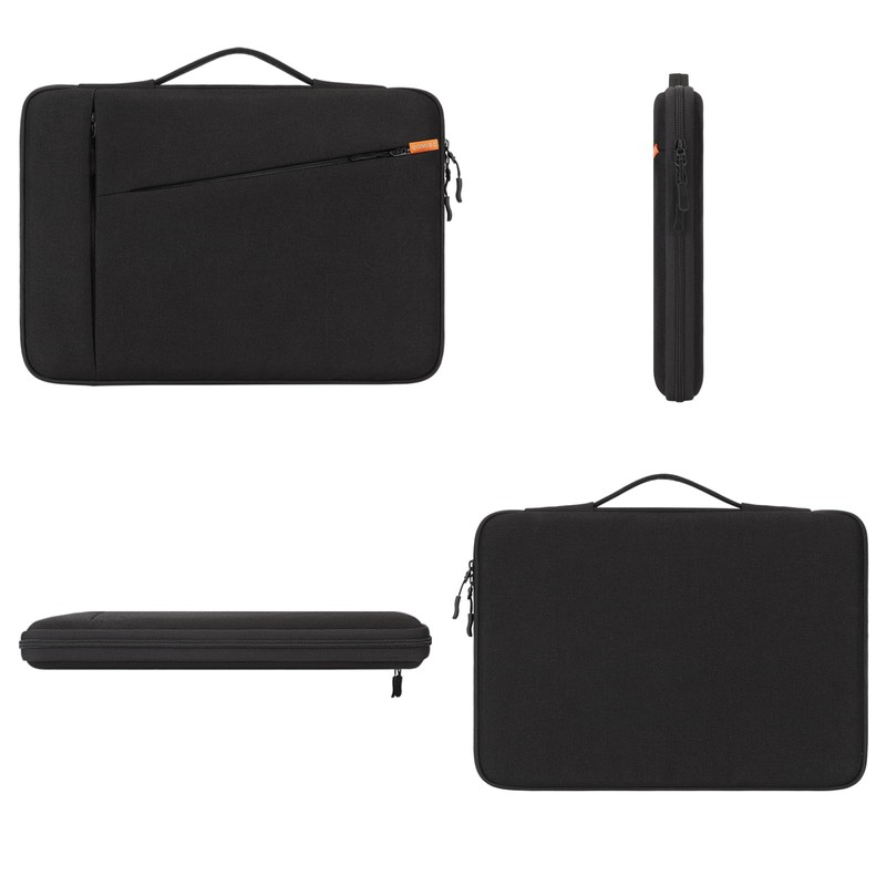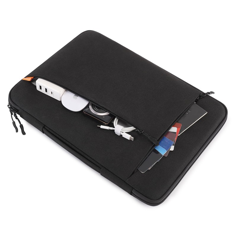 - Side pocket of the bag is ideal for storing small items such as power adapters, cables, pens and notebooks, with additional comfort.