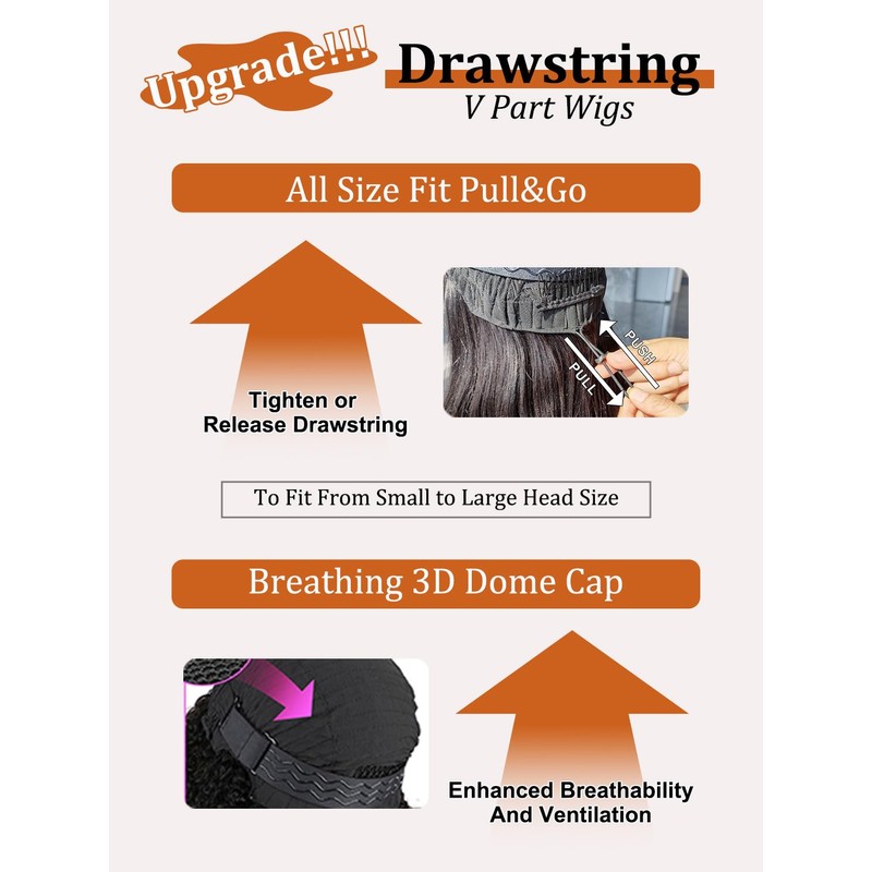 Domiso Elastic Drawstring Yaki Straight Upgrade V Part Wig Human Hair All Size Fit Protective Style No Leave Out V Part Part Human Hair Glueless Beginner Friendly 22 Inch