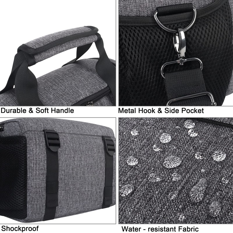 - Stylish: Camera bag made of durable and water-repellent fabric, this camera bag is perfect for a day trip or trip and offers practical features for casual photographers.