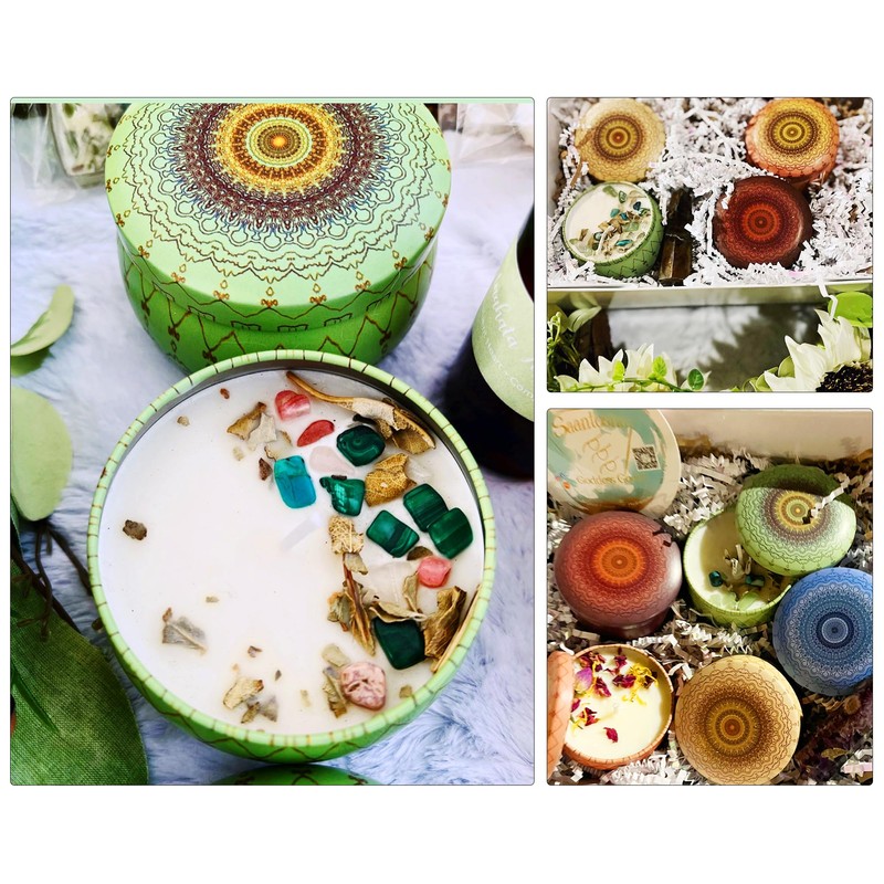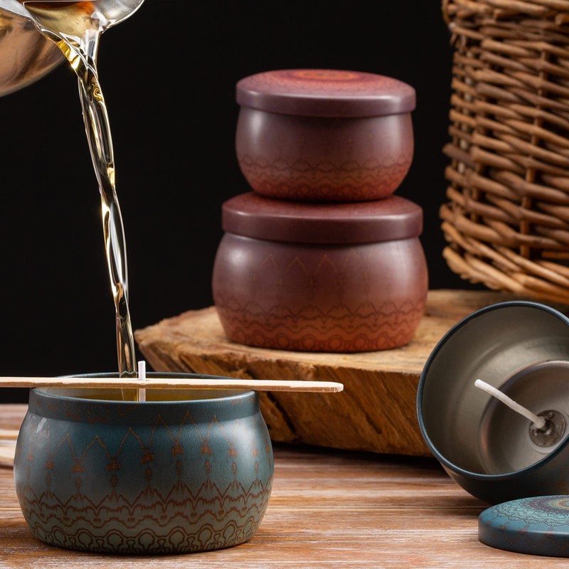 - What's in the box: Includes 8 different types of printed round containers, tinplate material, non-breakable properties, secure and secure, easy-to-open LIDS with good sealing, additional gifts include about 24 candle wicks, 5 wick holder, 32 double-sided tape.
