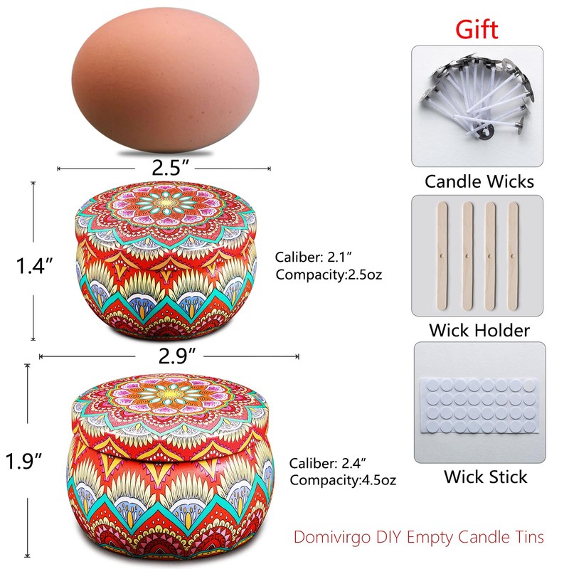 - What's in the box: Includes 24 different types of printed round containers, tinplate material, non-breakable properties, secure and secure, easy-to-open LIDS with good sealing, additional gifts include about 29 candle wicks, 4 wick holder, 32 double-sided tape.