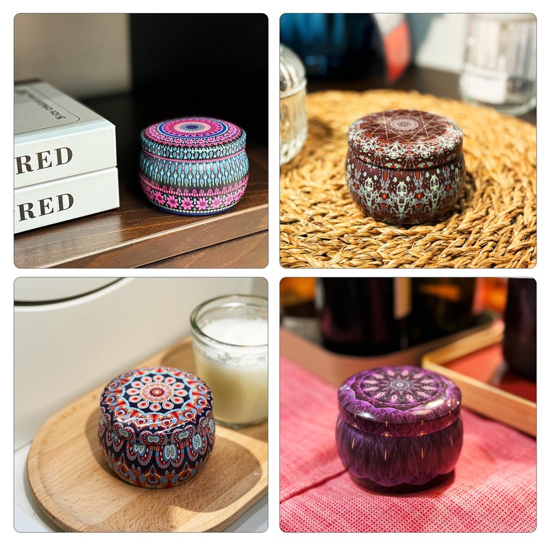 - Exquisite Design Candle Jar: Tinplate candle jar with beautiful color and unique design printed, which is protected by US copyright. The recycling of 24pcs 24styles and various colors represents a healthy and environmentally friendly lifestyle. Not only can they be used as decorations in your home and anywhere, but they are also great gifts for family or friends. They will absolutely love these elegantly designed cans!