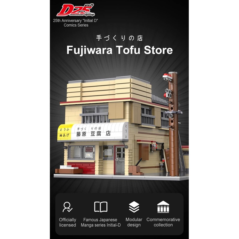 - INITIAL-D’s 25-th ANNIVERSARY – Recreate that exact feeling by faithfully and accurately presenting the build you love as a brick model. The Initial D Fujiwara's Tofu Shop is made with extreme attention to details, construction set to build are licensed by both the manga rights holder and the manufacturer; giving the model set the exact look and feel expected by fans, hobbyist brick builders and enthusiasts.