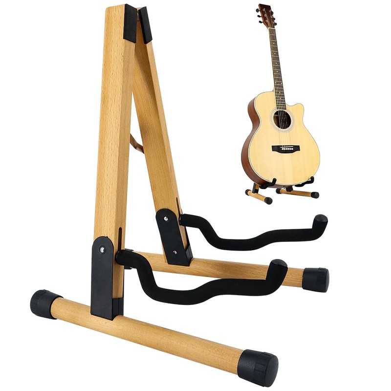 - High Grade Solid Wood:Made of solid beech wood.Eco-friendly natural wood,original wood texture smooth surface by fine processing ,makes guitar stand more solid.The carved wood grain makes it elegant and beautiful. This compact guitar holder stand brings an excellent hand feel rather than other metal stands.