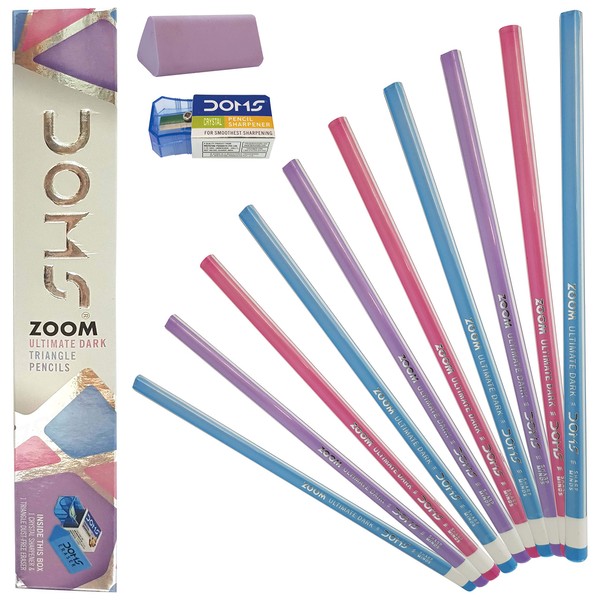 Doms Triangular Wood Graphite 10 Pencils With Eraser Sharpener For School Home Office Nursery Kids Students