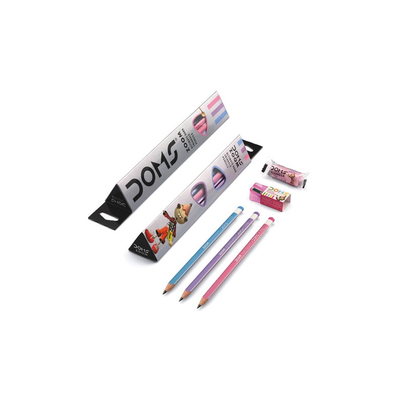 Doms Zoom Ultimate Dark Triangle Pencils (10pcs) with Free Eraser, Sharpener and 15cms Ruler