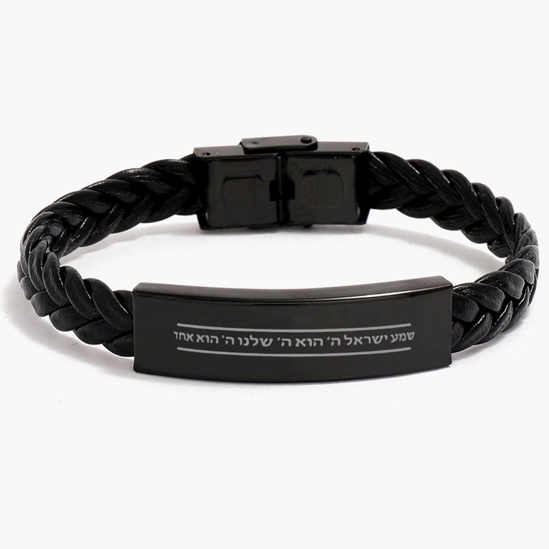 DOMYUHAO Jewish Hebrew Prayer Bracelet, SHEMA ISRAEL Hear, Israel, the Lord is our G-d, the Lord is One, ISRAEL Hebrew Jewelry Gifts for Men and Women, Black Stainless Steel Braided Rope Bracelet
