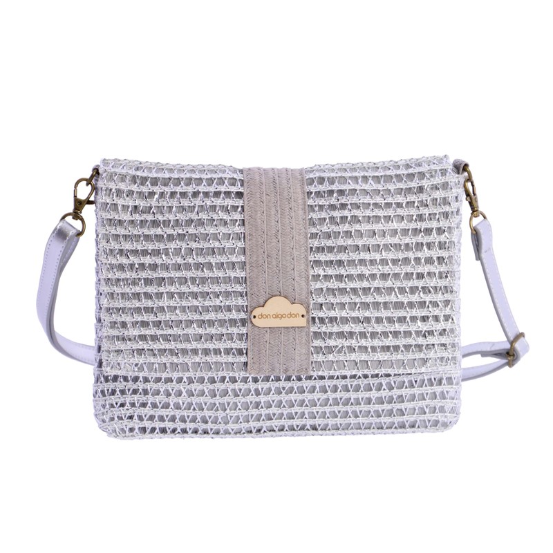 DON ALGODON Women's Faro Shoulder Bag, Beach Bag, Summer Bag, Raffia Bag, silver