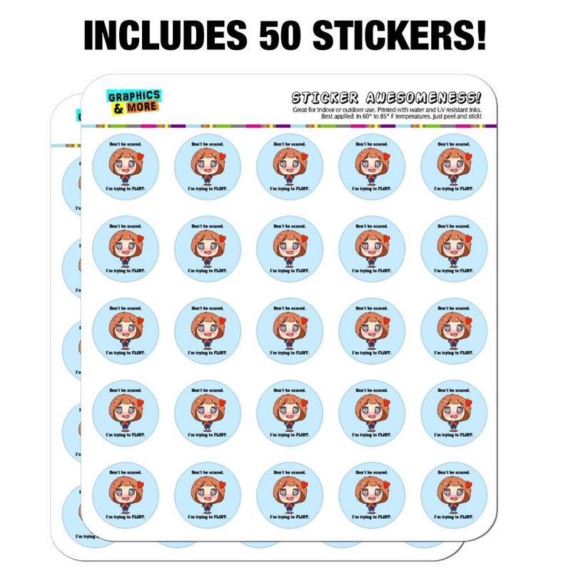Don't Be Scared I'm Trying to Flirt Kawaii Chibi Heart 1" Planner Calendar Scrapbooking Crafting Clear Stickers