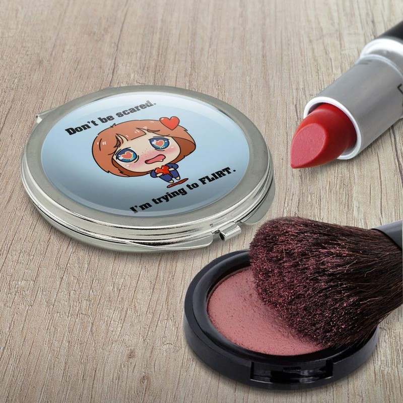 Don't Be Scared I'm Trying to Flirt Kawaii Chibi Heart Compact Travel Purse Handbag Makeup Mirror