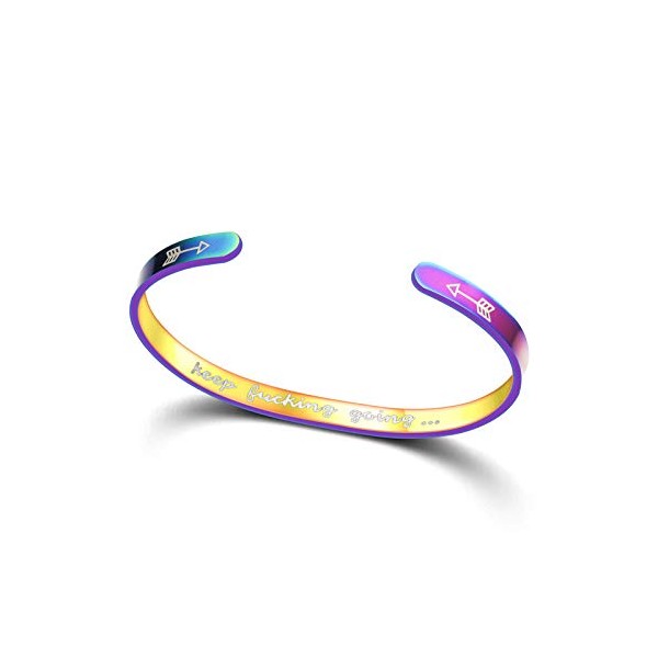 - Stainless Steel Keep Going Bracelet: This inspirational bangle bracelets is made of surgical 316L stainless steel, pure high grade stainless steel cuff, Hypo-allergenic and Nickel free, will not tarnish. It is solid but lightweight, environmental, fadeless, no harm to skin and perfect for daily wear.