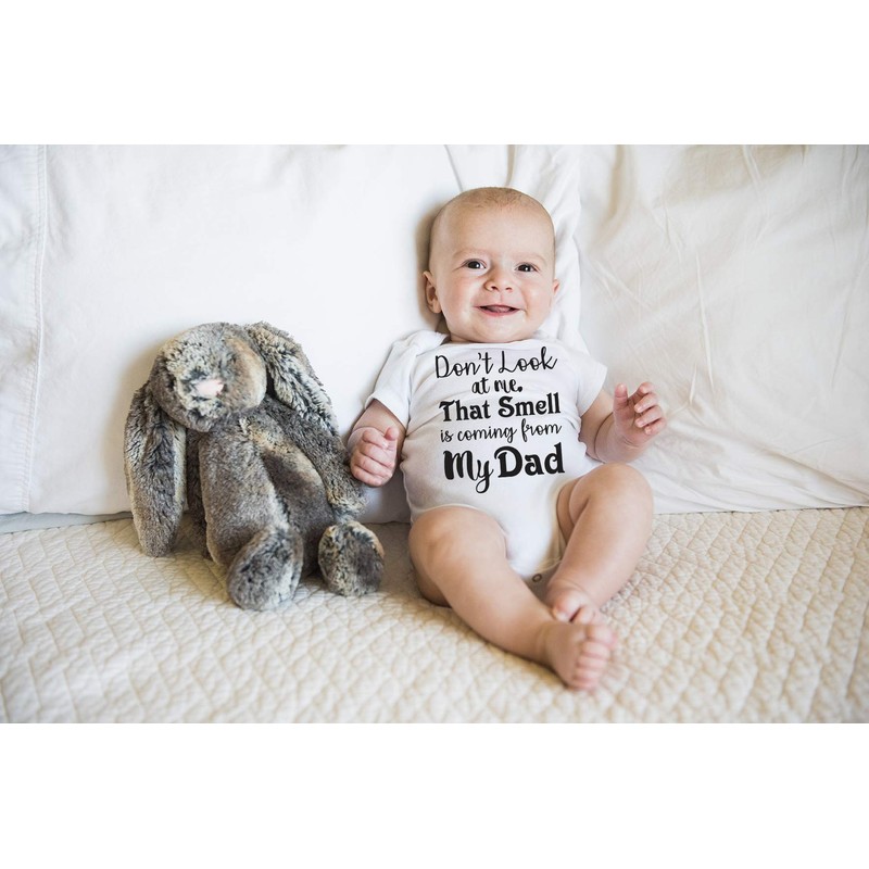 Don't Look At Me That Smell Is Coming From Daddy - Funny Baby Essentials Bodysuit - Baby Romper (Newborn, White)