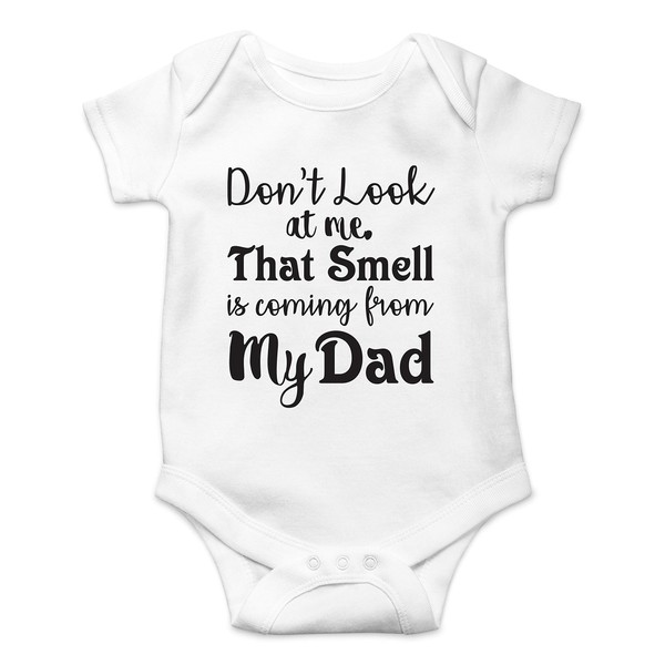Don't Look At Me That Smell Is Coming From Daddy - Funny Baby Essentials Bodysuit - Baby Romper (Newborn, White)