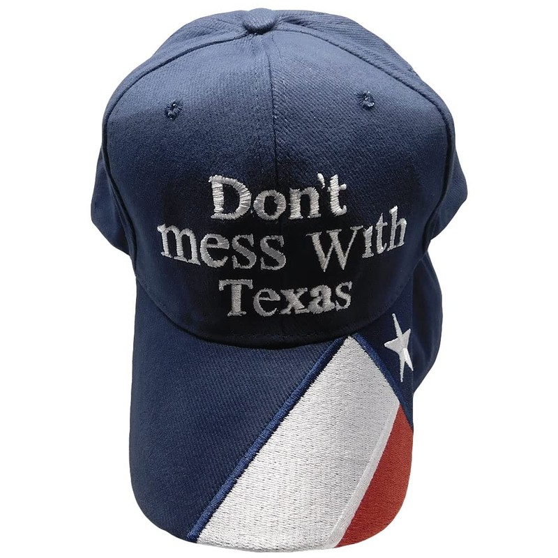 Don't Mess with Texas with Texas Flag On Bill Navy Blue 100% Cotton Adjustable Embroidered Hat Cap